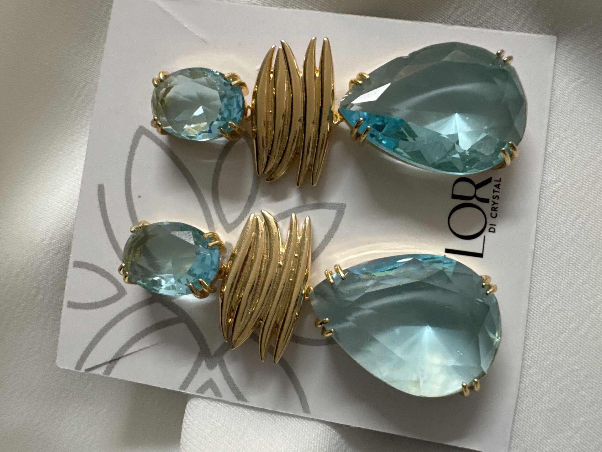 - Brinco de fdetalhe dourado cascata com gota Aqua
